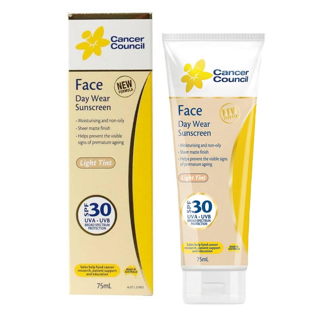 Cancer council 75ml daywear moisturiser spf50+ light tint.